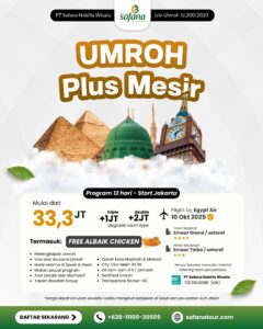 🌍 *Umroh Plus Mesir bersama Safana Tour* bukan sekadar ibadah, tapi juga sebuah *perjalanan menapak jejak Nabi*, menyerap ilmu, dan menikmati keindahan Islam dari sisi yang berbeda.